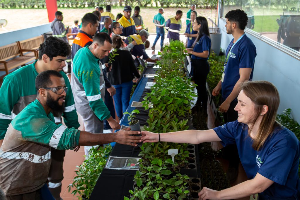 Nas unidades de Mariana (MG), Candonga (MG), Matipó (MG), Ubu (ES) e Muniz Freire (ES), empregados e contratados participaram de mobilizações com distribuição de mudas, exposição de sementes e exibição de vídeo sobre a Rede de Sementes e Mudas da Bacia do Rio Doce – projeto de reparação que conecta restauração florestal e desenvolvimento social. O processo abrange desde a coleta, armazenamento e avaliação de sementes nativas, passando pela produção de mudas em viveiros locais, até a restauração florestal em áreas degradadas.